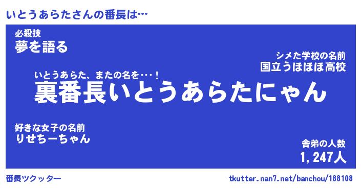 | 男性向けラノベタイトル風あだ名 | 『イトウアラタアートオンライン』 |