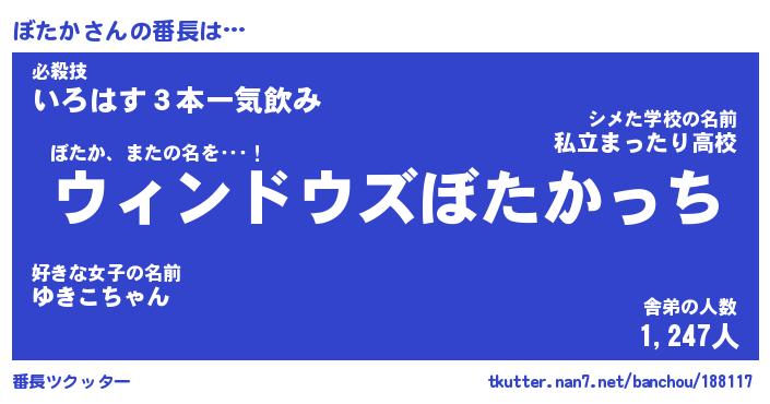 | ヒーロー風カッコイイあだ名 | 『スーパーボタカ』『ウルトラぼたかマン』 |