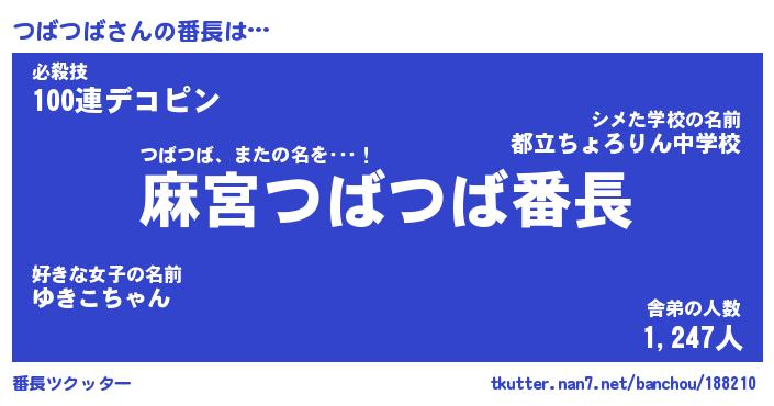 | ヘコむあだ名 | 『つばっふぃ~』『つくし』『つばお』 |