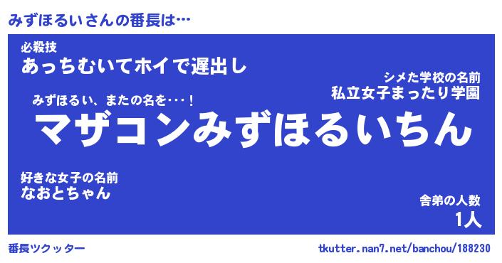 | ヘコむあだ名 | 『みずもー』『酢こんぶ』 |