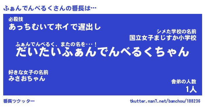 | 伝説のあだ名 | 『不死鳥のスナイパーふぁんでんべるく』 |