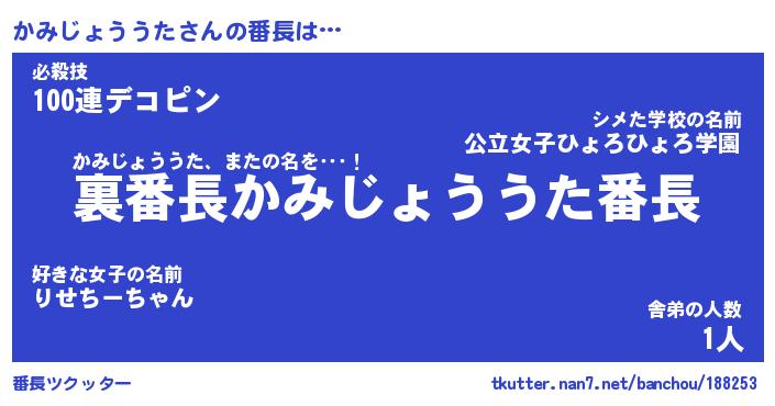 | ヒーロー風カッコイイあだ名 | 『スーパーカミジョウウタ』 |