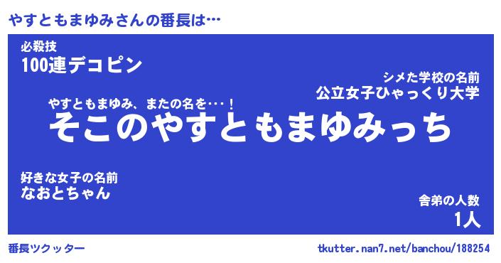 | 意味不明あだ名 | 『ペロリンやすともまゆみ』 |