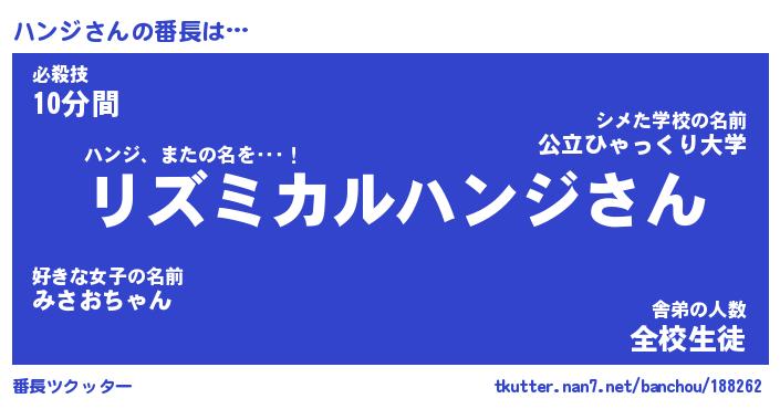 | ポケモン風あだ名 | 『ハンチュウ』『ハンジダネ』 |