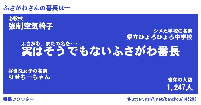 | ヒーロー風カッコイイあだ名 | 『スーパーフサガワ』『銀牙騎士フサ』 |
