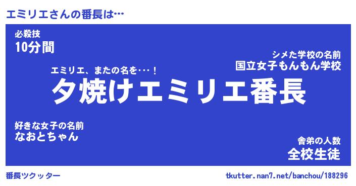 | 意味不明あだ名 | 『ペロリンエミリエ』『永久保存エミリエ』 |