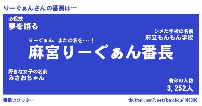 | 欧米人風あだ名 | 『マイケルりーぐぁん』 |