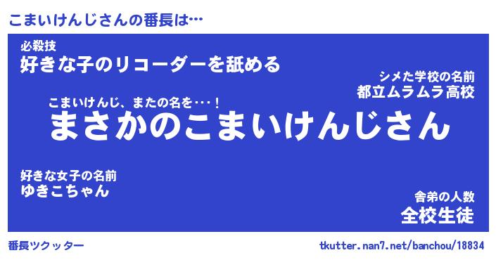 | ヒーロー風カッコイイあだ名 | 『スーパーコマイケンジ』『暗黒騎士コマ』 |