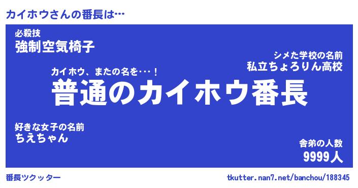 | ファンタジー風あだ名 | 『カイフェル』『エターナルカイホウー』 |