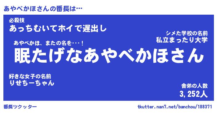 | 意味不明あだ名 | 『ペロリンあやべかほ』 |