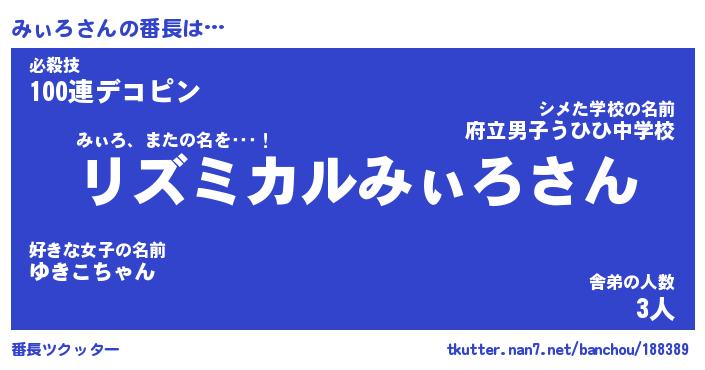 | ヒーロー風カッコイイあだ名 | 『スーパーミィロ』『ウルトラみぃろマン』 |