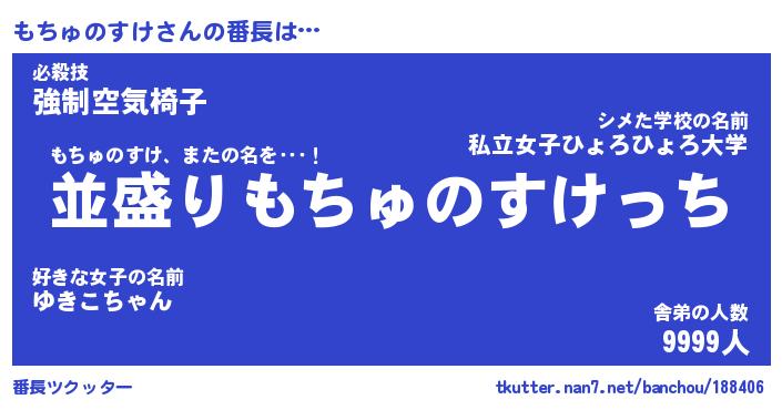 | 肩書あだ名 | 『もちゅのすけ店長』『もちゅのすけ団長』 |