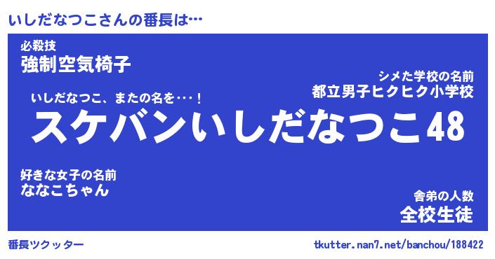 | ヒーロー風カッコイイあだ名 | 『スーパーイシダナツコ』『暗黒騎士イシ』 |