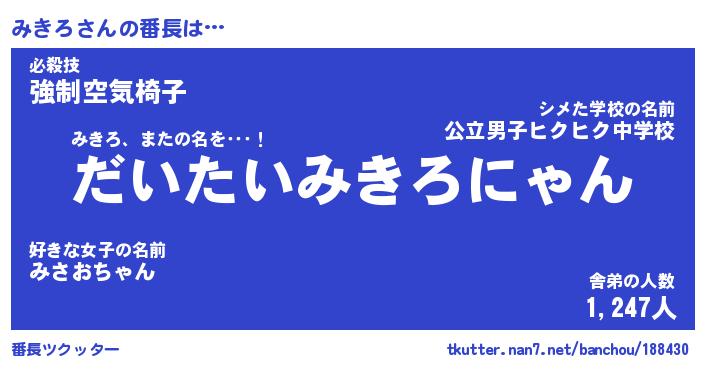 | 意味不明あだ名 | 『ペロリンみきろ』『みきろフォーエバー』 |