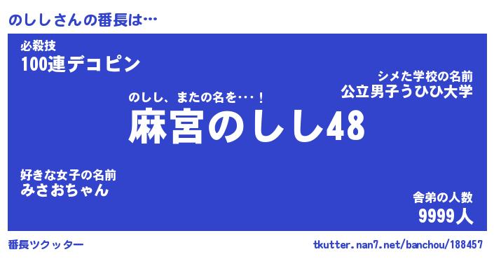 | 意味不明あだ名 | 『ペロリンのしし』『のししフォーエバー』 |