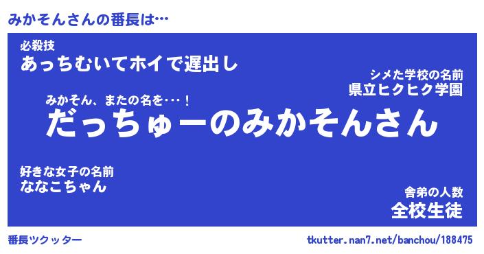 | 肩書あだ名 | 『みかそん御曹司』『みかそん大統領』 |