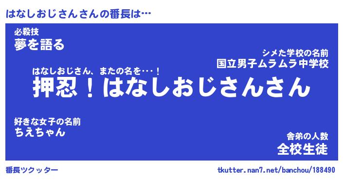 | ヒーロー風カッコイイあだ名 | 『スーパーハナシオジサン』 |