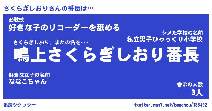 | 肩書あだ名 | 『さくらぎしおり店長』 |