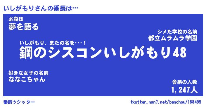 | 肩書あだ名 | 『いしがもり社長』『いしがもり国家主席』 |