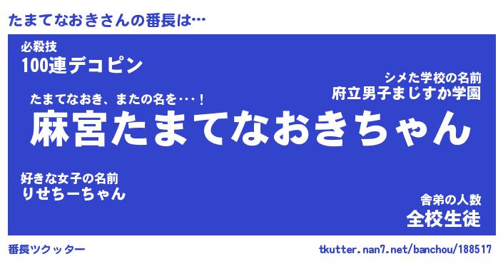 | ヒーロー風カッコイイあだ名 | 『スーパータマテナオキ』『暗黒騎士タマ』 |