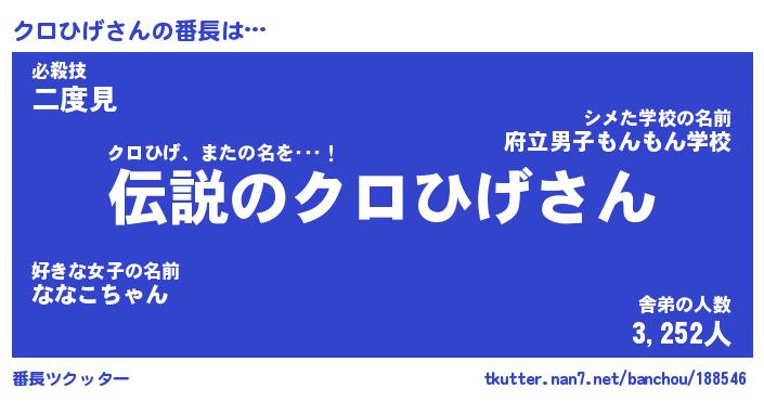 | 意味不明あだ名 | 『ペロリンクロひげ』『永久保存クロひげ』 |
