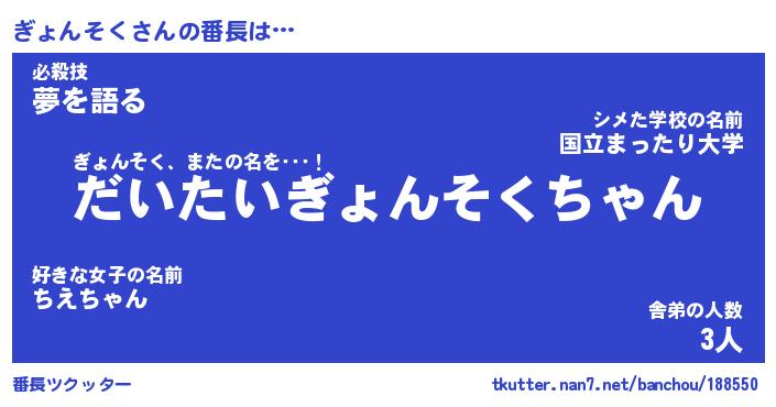 | ヘコむあだ名 | 『ぎょにゅー』『豆乳』『ぎょお』 |