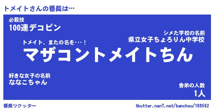 | 意味不明あだ名 | 『ペロリントメイト』『永久保存トメイト』 |