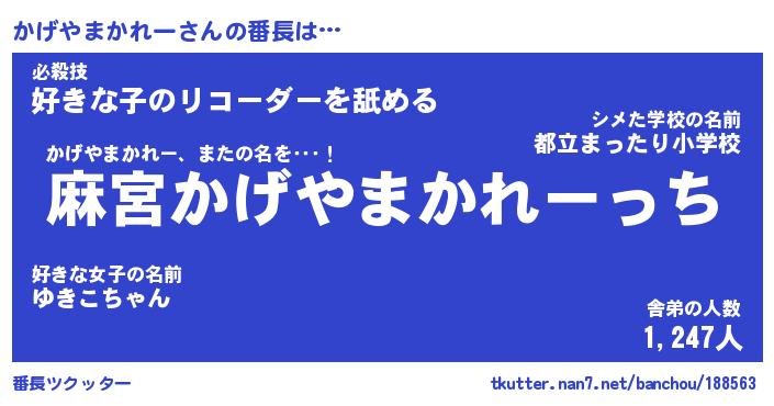 | ヘコむあだ名 | 『かげもー』『なまこ酢』 |