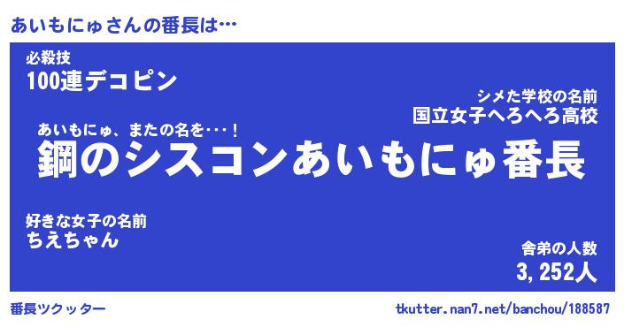 | 伝説のあだ名 | 『封印されしスナイパーあいもにゅ』 |
