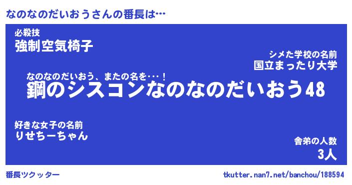 | ヒーロー風カッコイイあだ名 | 『スーパーナノナノダイオウ』 |