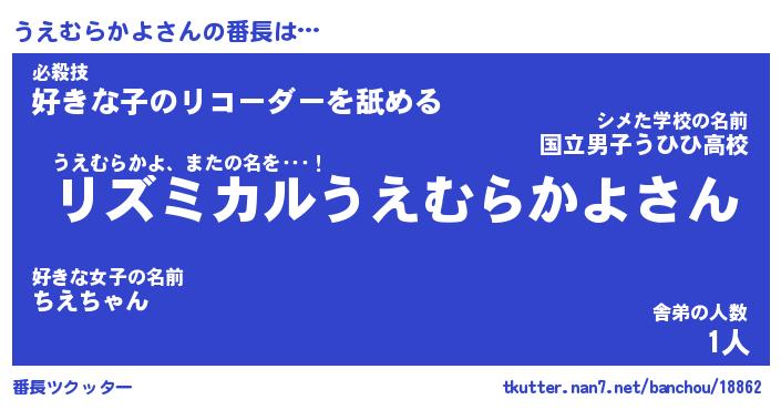 | 意味不明あだ名 | 『ペロリンうえむらかよ』 |