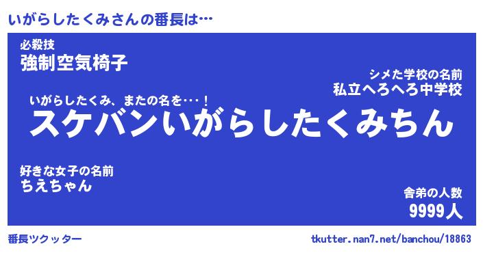 | ピコ太郎風あだ名 | 『イコ一郎』『ピイ四郎』『イガ八郎』 |
