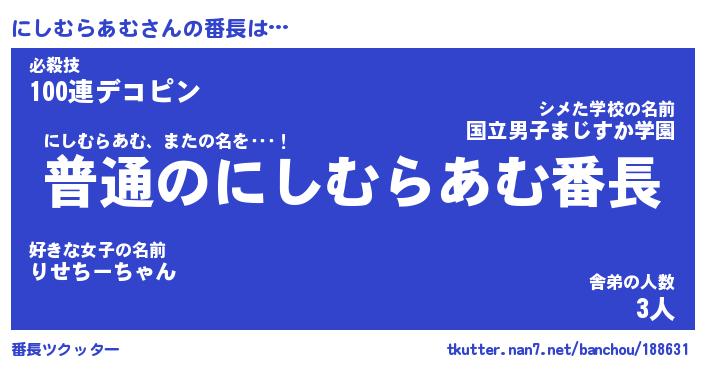 | 肩書あだ名 | 『にしむらあむCEO』『にしむらあむ班長』 |