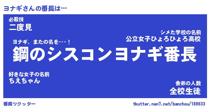 | 伝説のあだ名 | 『封印されしスナイパーヨナギ』 |