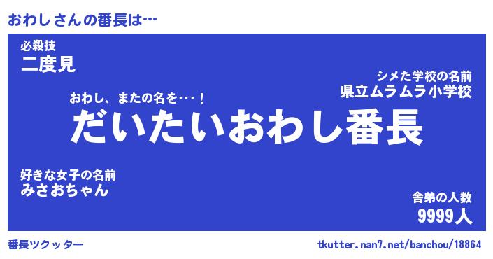 | ヒーロー風カッコイイあだ名 | 『スーパーオワシ』『ウルトラおわしマン』 |