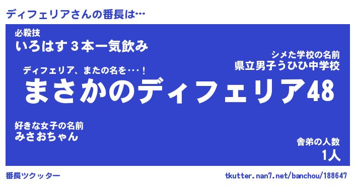 | ヒーロー風カッコイイあだ名 | 『スーパーディフェリア』『銀牙騎士ディ』 |