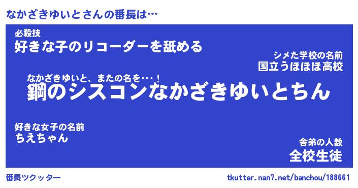 | 伝説のあだ名 | 『封印されしスナイパーなかざきゆいと』 |