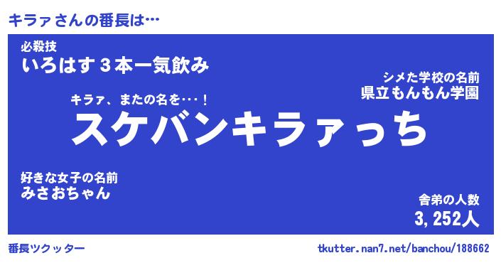 | ヒーロー風カッコイイあだ名 | 『スーパーキラァ』『ウルトラキラァマン』 |