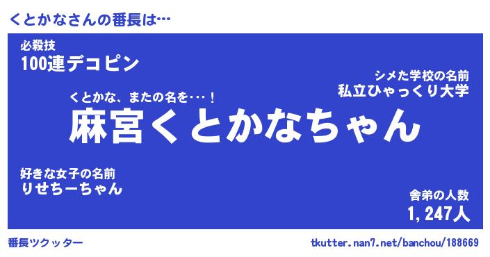 | 意味不明あだ名 | 『ペロリンくとかな』『永久保存くとかな』 |