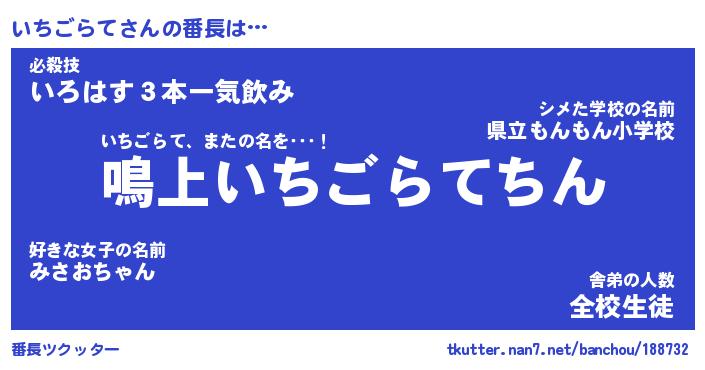 | ポケモン風あだ名 | 『イチチュウ』『イチゴダネ』 |