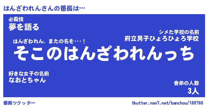 | ポケモン風あだ名 | 『ハンチュウ』『ハンザダネ』 |