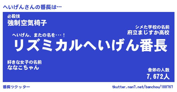 | 意味不明あだ名 | 『ペロリンへいげん』『永久保存へいげん』 |