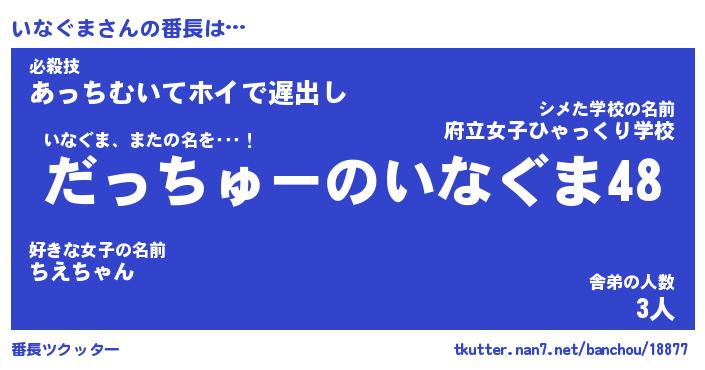 | 提督の名前『いなぐま提督』嫁『鳥海』 |