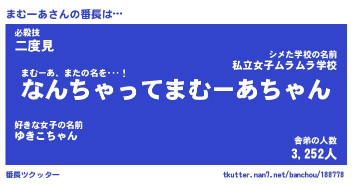 | 意味不明あだ名 | 『ペロリンまむーあ』『永久保存まむーあ』 |