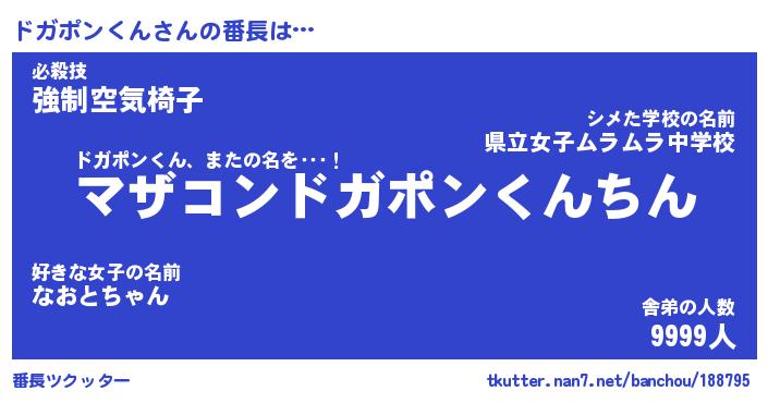 | ヘコむあだ名 | 『ドガもー』『つくし』『ドガっちょ』 |