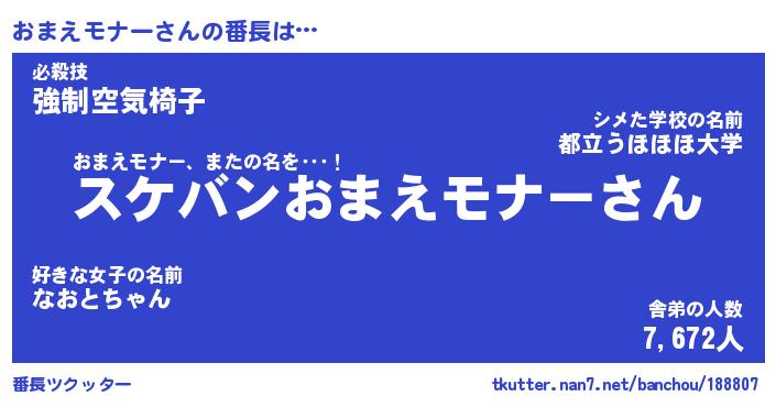 | ヒーロー風カッコイイあだ名 | 『スーパーオマエモナー』『炎刃騎士オマ』 |