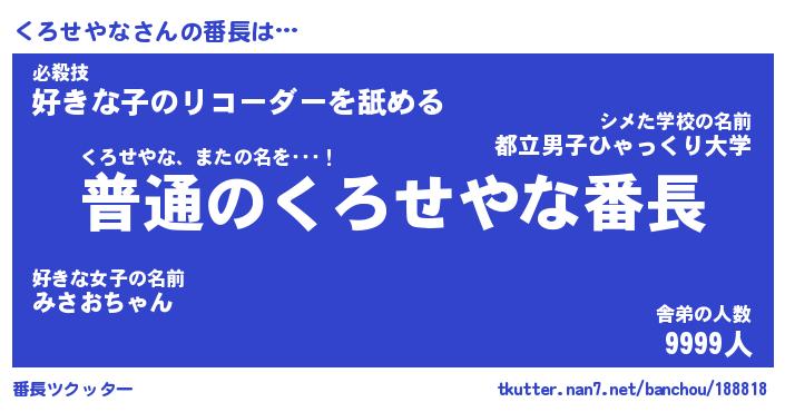 | ヘコむあだ名 | 『くろにー』『酢こんぶ』『くろっぺ』 |