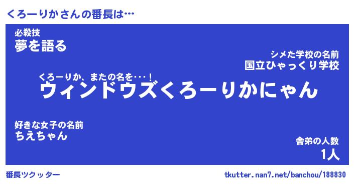 | ヒーロー風カッコイイあだ名 | 『スーパークローリカ』『銀牙騎士クロ』 |