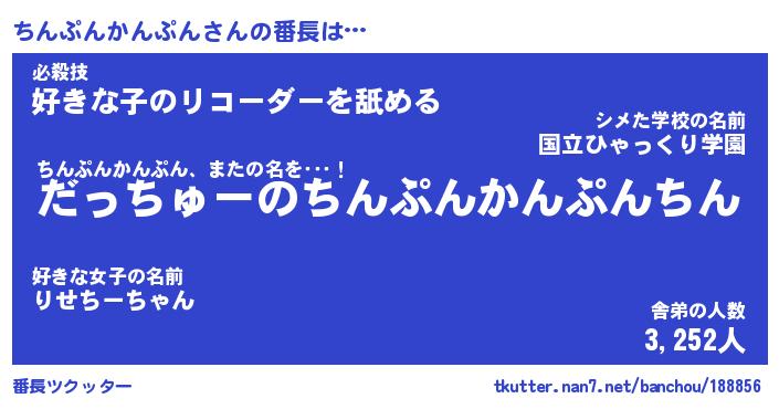 | 2回繰り返すあだ名 | 『ちんちん』『ちちんん』『ぬめぬめ』 |