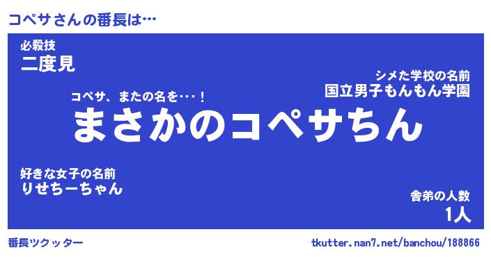 | ヒーロー風カッコイイあだ名 | 『スーパーコペサ』『ウルトラコペサマン』 |